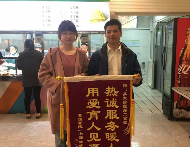 11月18日上午,蘇州大學管理學院一七屆學生陸佳娣來到科橋餐飲公司蘇大獨墅湖校區二食堂項目,給公司獨墅湖二食堂項目的全體員工送了一面錦旗,“熱忱服務暖...
