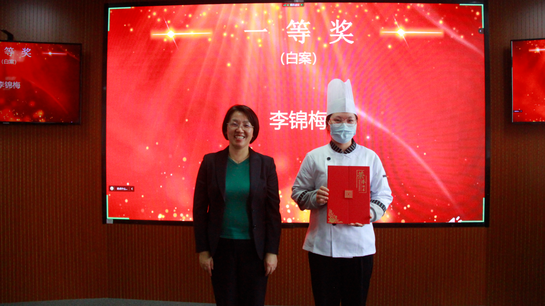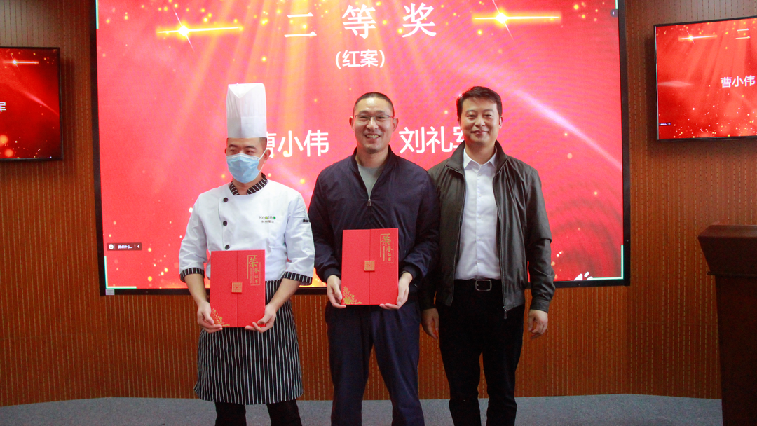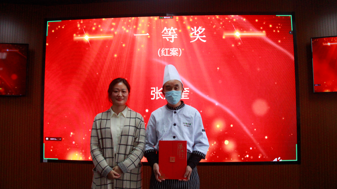 經過緊張的評選和打分,最終高中項目張建奎和五食堂項目李錦梅分別獲得紅案和白案一等獎。公司領導班子及兩位專家為獲獎人員頒獎。