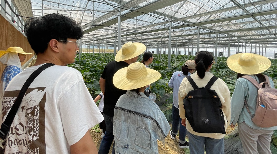 伴隨一路的風景,他們來到了目的地。負責人熱情認真地給他們講解園區的布局,發展道路和藍圖。緊接著他們來到大棚里,觀看培育的西紅柿,西葫蘆等水果蔬菜,并由專業人士講解培育的方法和過程。