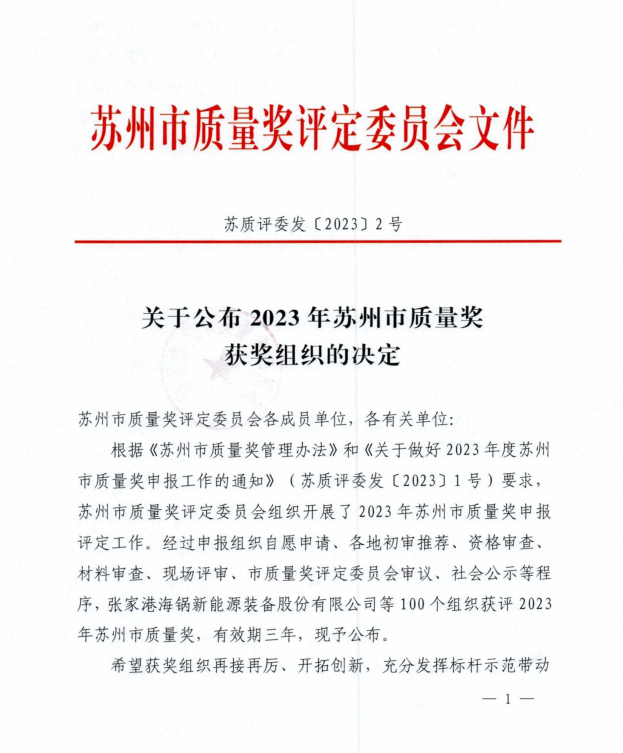 蘇州市質(zhì)量獎(jiǎng)是蘇州市人民政府設(shè)立的質(zhì)量榮譽(yù),授予在全面質(zhì)量管理方面取得顯著成就的蘇州企業(yè)和組織。